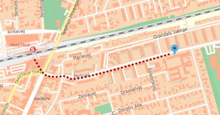 Kommer du udefra, er den letteste måde at tage til TRC ved at rejse med S-toget (linie B), stå af på Taastrup Station, og så blot gå ca. 700 meter ned af Parkvej, til du ankommer til skolen.